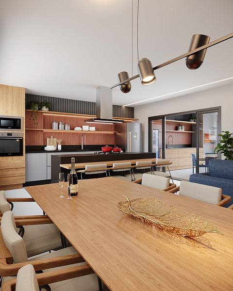 - Uma cozinha ampla e sofisticada